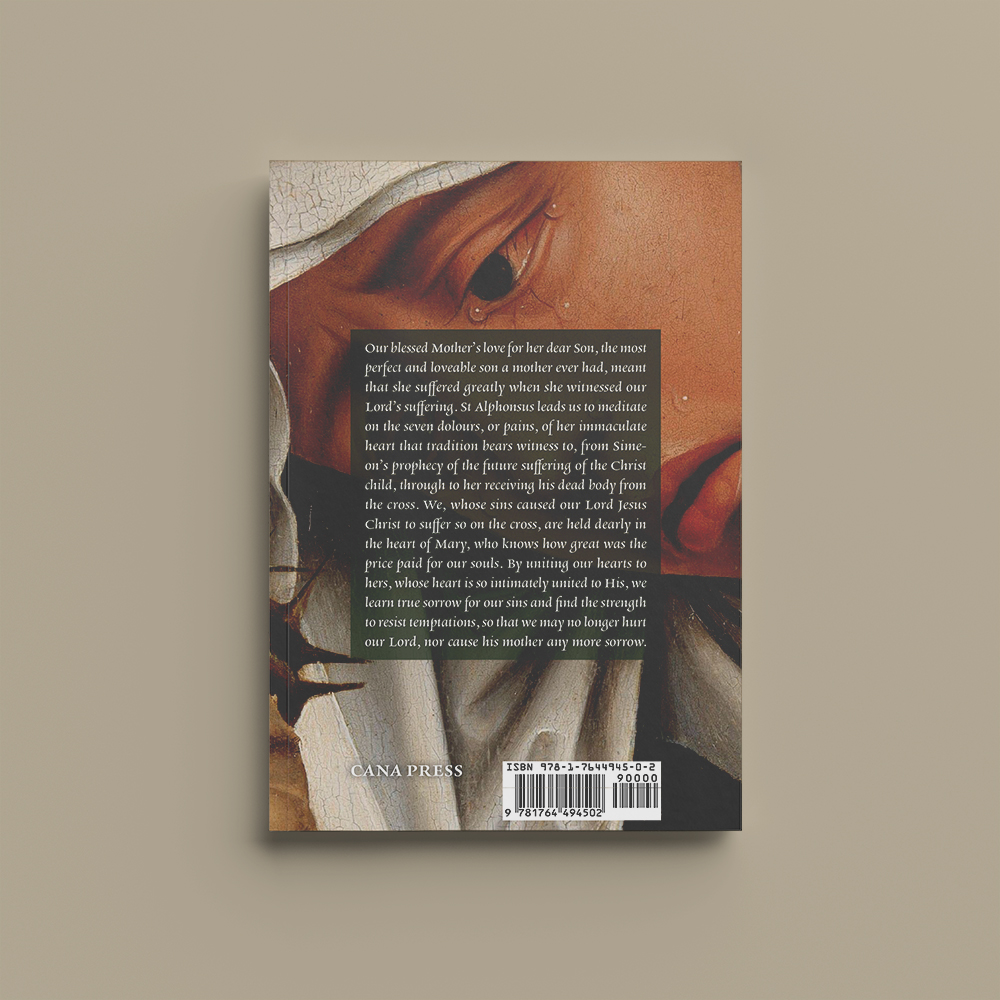 Our blessed Mother’s love for her dear Son, the most perfect and loveable son a mother ever had, meant that she suffered greatly when she witnessed our Lord’s suffering. St Alphonsus leads us to meditate on the seven dolours, or pains, of her immaculate heart that tradition bears witness to, from Simeon’s prophecy of the future suffering of the Christ child, through to her receiving his dead body from the cross. We, whose sins caused our Lord Jesus Christ to suffer so on the cross, are held dearly in the heart of Mary, who knows how great was the price paid for our souls. By uniting our hearts to hers, whose heart is so intimately united to His, we learn true sorrow for our sins and find the strength to resist temptations, so that we may no longer hurt our Lord, nor cause his mother any more sorrow.